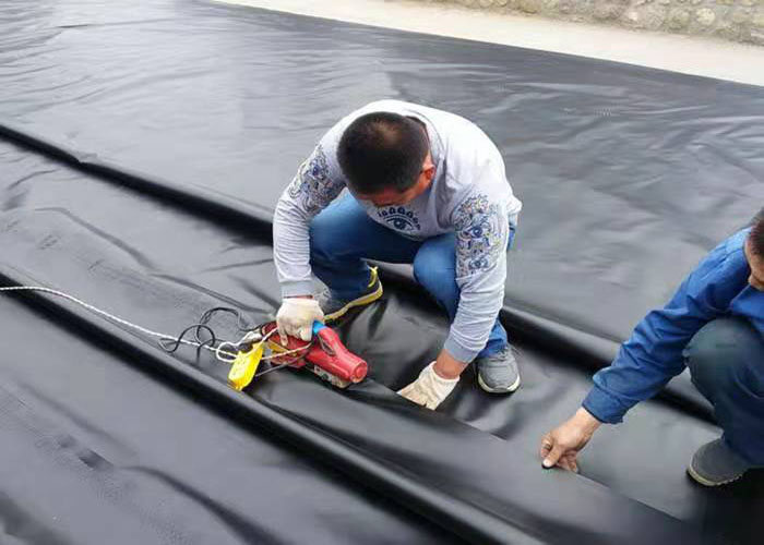 防滲膜化學穩固性好,具有較高的剛性和韌性,機器強度好,耐環境應力開裂與耐扯破強度性能好,隨著密度的上升,機器性能和隔絕性能會相應進步,耐熱,和抗拉強度也更高;可耐酸、堿、有機溶劑等腐化。池底采用防滲膜系統主要用于高位養殖池的建設和土池的改造,HDPE防滲膜具抗拉伸,抗沖擊,抗撕裂強度高,和耐靜水壓高的特點,在耐酸堿腐蝕、抗微生物侵蝕及防滲濾方面有較好性能,養殖專用防滲膜可以使池底與池水完全隔開,由于HDPE防滲膜表面光滑,不僅消毒、清淤方便,也有利于防止底部病原的傳播。為大家簡單介紹一下復合土工膜如何加強防水性能:為了使土工膜起到應有的防滲作用,除要自身不透水外,還需注意鋪設土工膜的施工質量。1土工膜與支撐材料接觸面應力求平整,以免薄膜被刺破喪失其防滲作用,否則,應設細粒墊層,以保護防滲膜不被損傷。通常在拐角及畸形地段,應是接縫長度盡量減短。除特殊要求外,在坡度大于1:6的斜坡上距頂坡或應力集中區域1.5米范圍內,盡量不設焊縫。