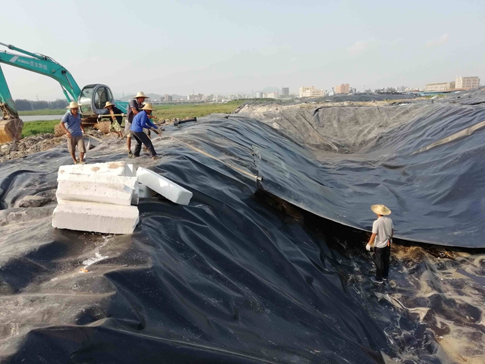 6. 鋪設HDPE土工膜時應力求焊縫少,在保證質量的前提下,盡量節約原材料。同時也容易保證質量。